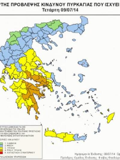 Πολύ υψηλός είναι ο κίνδυνος εκδήλωσης πυρκαγιάς σε αρκετές περιοχές της χώρας την Τετάρτη εξαιτίας των καιρικών συνθηκών που θα επικρατούν.
