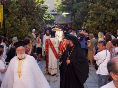 Κατόπιν προεξάρχοντος του Σεβασμιοτάτου Μητροπολίτου Πατρών κ.κ. Χρυσοστόμου τελέστηκε Μέγας Πανηγυρικός Εσπερινός μετά αρτοκλασίας, κατά τον οποίο ο σεπτός ποιμενάρχης μας κήρυξε τον Θείο λόγο. Το βράδυ τελέστηκε ιερά αγρυπνία όπου προεξήρχε ο πρωτοσύγκελος της Μητροπόλεως Πατρών αρχιμανδρίτης Αρτέμιος Αργυρόπουλος ενώ έψαλαν οι μοναχές της Παναγίας Ελεούσας.