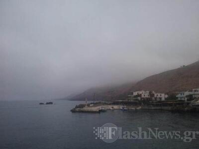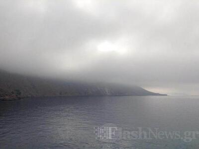 Ένα πυκνό πέπλο ομίχλης είχε καλύψει ολόκληρη την περιοχή από το Φραγκοκάστελλο μέχρι το Λουτρό και από την Χώρα Σφακίων μέχρι την Ίμπρο και τ' Ασκύφου.