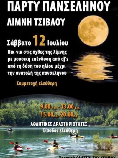 Μετά το σούρουπο και υπό το φως της πανσελήνου του Ιουλίου (το ολόγιομο φεγγάρι θα φωτίσει μοναδικά το ορεινό τοπίο και την ιδιαίτερης ομορφιάς οροσειρά του Χελμού), θα στηθεί ένα μεγάλο πικ-νικ πάρτυ στην όχθη της λίμνης, όπου καθένας μπορεί να φέρει φαγητά και ποτά (ή να τα προμηθευτεί από τα εστιατόρια της περιοχής) και να συμμετέχει σ' αυτή την τρυφερή και ρομαντική βραδιά, υπό τις μουσικές επιλογές των Σπήλιου Ζιδρόπουλου, Θανάση Τόλιου και Παναγή Παναγόπουλου.