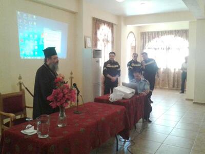 Στούς Ἱερεῖς ὡμίλησαν ἐνημερωτικά καί ἐποπτικά ὁ Διοικητής τῆς Πυροσβεστικῆς Ὑπηρεσίας Πατρῶν, Πύραρχος κ. Εὐθύμιος Γεωργακόπουλος, ὁ ὁποῖος μετέφερε μήνυμα καί χαιρετισμό τοῦ Συντονιστοῦ Ἐπιχειρήσεων Περιφερειακῶν Πυροσβεστικῶν Διοικήσεων Δυτ. Ἑλλάδος, Πελοποννήσου & Ἰονίων Νήσων, Ὑποστρατήγου Ἰωάννου Καρατζᾶ, ὁ Διοικητής τοῦ Α’ Πυροσβεστικοῦ Σταθμοῦ Πατρῶν, Ἀντιπύραρχος κ. Ἰωάννης Πετροῦτσος, καθώς καί ὁ Ὑποπυραγός κ. Ματθαῖος Κυρίτσης.
