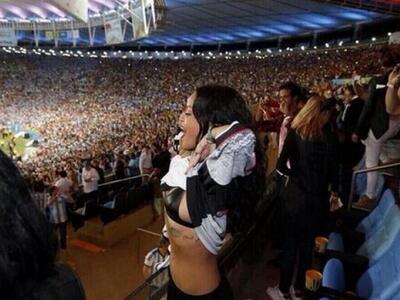 Ακόμα και στον τελικό του Παγκοσμίου Κυπέλλου η Ριάνα ήθελε να κλέψει την παράσταση. Και σε μεγάλο βαθμό τα κατάφερε, αφού στο Διαδίκτυο κυκλοφορεί παντού ο πανηγυρισμός της μετά το γκολ που σημείωσε ο Μάριο Γκέτσε. Η Ριάνα σήκωσε την μπλούζα της και άφησε τους πάντες δίπλα της άφωνους.