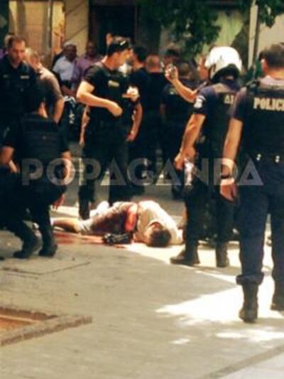 Λίγο μετά τη συμπλοκή και την ανταλλαγή πυροβολισμών στο κέντρο της Αθήνας ανάμεσα σε αστυνομικούς της ομάδας ΔΙΑΣ και τον Νίκο Μαζιώτη, ο κατηγορούμενος για τρομοκρατία έπεσε τραυματισμένος στο πεζοδρόμιο.