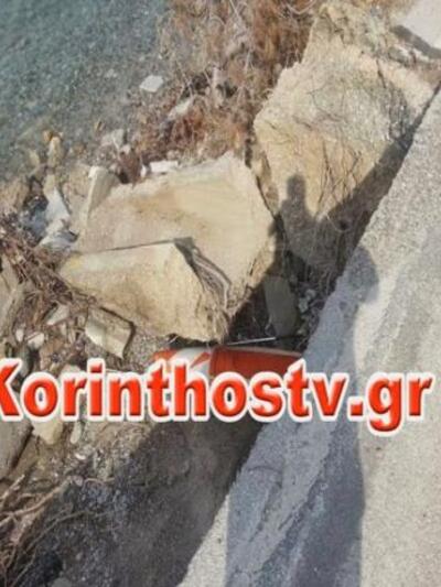 Συγκεκριμένα, σήμερα το απόγευμα κατέρρευσε η μια λωρίδα κυκλοφορίας της παλαιάς εθνικής οδού Κορίνθου - Πατρών στο 28ο χιλιόμετρο, εξαιτίας της διάβρωσης των ακτών του Κορινθιακού.