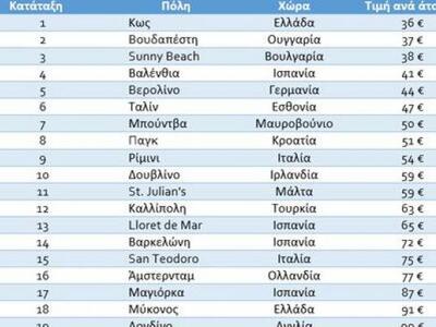 Η λίστα με τις 20 φθηνότερες περιοχές του κόσμου συντάχθηκε για την περίοδο από τις 11 έως τις 27 Ιουλίου και έγινε με βασικά κριτήρια τη διασκέδαση των νέων χωρίς να χαλάσουν μια περιουσία. Όπως αναφέρει η trivago, στην Κώ, η νυχτερινή ζωή είναι ιδανική για όλες τις ηλικίες, ενώ στην περίπτωση της Βουδαπέστης, η ουγγρική πόλη, πολύ δημοφιλής τουριστικός προορισμός τον χειμώνα, προσφέρει μια μεγάλη ποικιλία από μπαρ και συναυλίες κατά τη διάρκεια του καλοκαιριού.