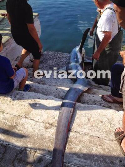Σύμφωνα με το ενημερωτικό portal eviazoom, ήταν πρωινές ώρες της Δευτέρας 21 Ιουλίου, όταν οι ψαράδες της περιοχής έβγαλαν από την θάλασσα ένα σκυλόψαρο γνωστό ως «αλεπού της θάλασσας» που είχε μήκος 3,5 μέτρα και βάρος περίπου 180 κιλά.