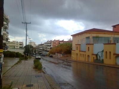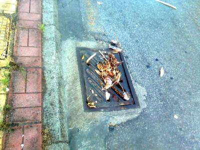 Στο μεταξύ η βροχή κατέβασε σκουπίδια και ξερά φύλλα στο δρόο και σε φρεάτια (ΦΩΤΟ).