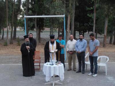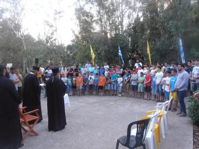 Τον Σεβασμιώτατο υποδέχθηκαν μαζί με τα  παιδιά,  ο Αρχηγός της κατασκηνωτικής περιόδου κ. Ανδρέας Θεοδωράτος, τα στελέχη της κατασκήνωσης, τα μέλη του Διοικητικού Συμβουλίου της Χριστιανικής Στέγης Πατρών καθώς και το υπόλοιπο βοηθητικό προσωπικό που διακονεί εθελοντικά την κατασκήνωση