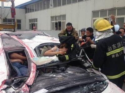 Από θαύμα σώθηκε ένα ζευγάρι στην πόλη Qingdao στην Κίνα, όταν το αυτοκίνητο στο οποίο επέβαιναν, καταπλακώθηκε από κοντέινερ βάρους 100 τόνων.