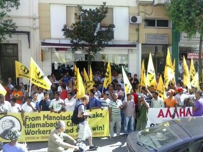 Η μία αφορά τη συγκέντρωση αλληλεγγύης από τον ΣΥΡΙΖΑ και άλλες οργανώσεις , στους μετανάστες - εργάτες γης σε φραουλοχώραφα της Μανωλάδας. Πρόκειται για την υπόθεση που είχε προκαλέσει πανελλήνιο σάλο, όταν τον Απρίλιο του 2013 δέχτηκαν πυροβολισμούς, γιατί ζήτησε τα δεδουλευμένα τους.