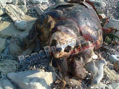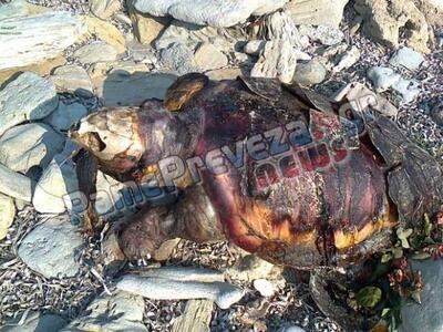 Μια νεκρή θαλάσσια χελώνα εντοπίσθηκε από λουόμενους σήμερα στην παραλία του Καναλίου στην Πρέβεζα.