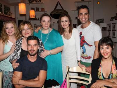 H Κάτια Δανδουλάκη, και η Τζόυς Ευείδη μετά την επιτυχημένη παράσταση στα πλαίσια του επετειακού 33 Φεστιβάλ Πάτρας, δεν θα μπορούσαν παρά να επισκεφθούν τις φίλες τους Σοφία και Ντίνα Χαντζή στο "απέναντι από το Ωδείο".