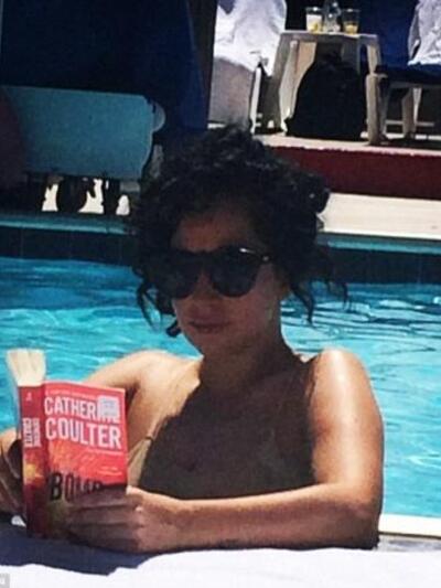 Παρεμπιπτόντως, ανέβασε και μερικές φωτογραφίες της την ώρα που διάβαζε ένα αστυνομικό μυθιστόρημα και μια ακόμα που ποζάρει κρατώντας ένα ποτήρι κρασί, δίπλα σε μια ταμπέλα που... απαγορεύει το αλκοόλ στην πισίνα...