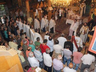 2) Ἀνήμερα ὁ Σεβασμιώτατος ἐτέλεσε τήν Θεία Λειτουργία, στόν πανηγυρίζοντα μεγαλοπρεπῆ καί ἱστορικό Ἱερό Ναό Παντοκράτορος, Πατρῶν.