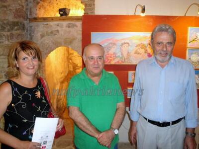 Στα εγκαίνια της έκθεσης του Γιώργου Σταθόπουλου, μεταξύ άλλων παρευρέθηκε και τον συνεχάρη ο απερχόμενος Δήμαρχος Ναυπάκτου Γιάννης Μπουλές.