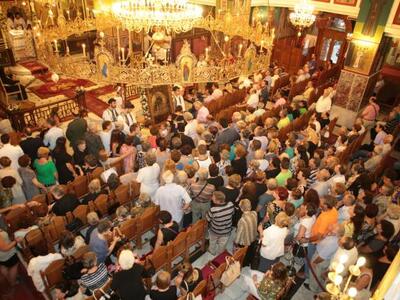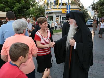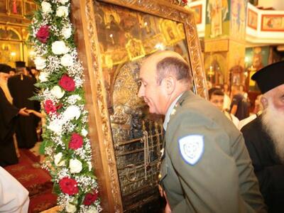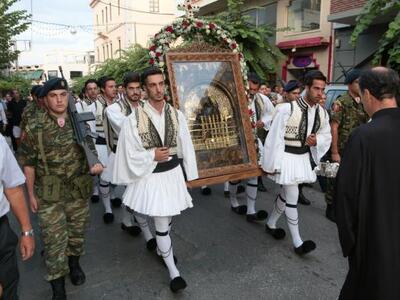 Της υποδοχής της εικόνας, που τιμητικά είχε τοποθετηθεί σε στρατιωτικό όχημα, προΐσταντο οι Μητροπολίτες Σερβίων και Κοζάνης κ. Παύλος (που είναι και Αιγιαλέας στην καταγωγή κι είχε διατελέσει πρωτοσύγκελος της Ι.Μ. Καλαβρύτων κι Αιγιαλείας τη δεκαετία του 1980), Πατρών κ. Χρυσόστομος και Καλαβρύτων & Αιγιαλείας κ. Αμβρόσιος, ενώ το παρών έδωσαν σύσσωμος ο Ιερός Κλήρος της πόλης, τιμητικό στρατιωτικό άγημα και τμήμα του Χορευτικού Ομίλου Αιγίου, καθώς και η Φιλαρμονική Αιγίου που παιάνιζε καθ'όλη τη διάρκεια της πομπής από την πλατεία Αγίας Λαύρας προς τη Φανερωμένη. Ακολούθησε Πανηγυρικός Εσπερινός και Αγρυπνία, ενώ όλη τη νύχτα ο Ιερός Ναός, που φέτος κλείνει τα 100 χρόνια λειτουργίας του, παρέμεινε ανοιχτός με χιλιάδες προσκυνητές να προσέρχονται για να λάβουν την ευλογία της Παναγίας.