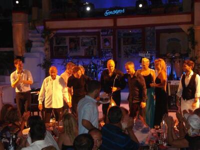 Ο Μίμης Πλέσσας έμεινε συνεχόμενα στη σκηνή για δύο ώρες και όταν κατέβηκε, παρέμεινε στον χώρο ακούγοντας το μουσικό πρόγραμμα που συνέχισαν ο Γρηγόρης Πετράκος και η Βίκυ Καρατζόγλου.