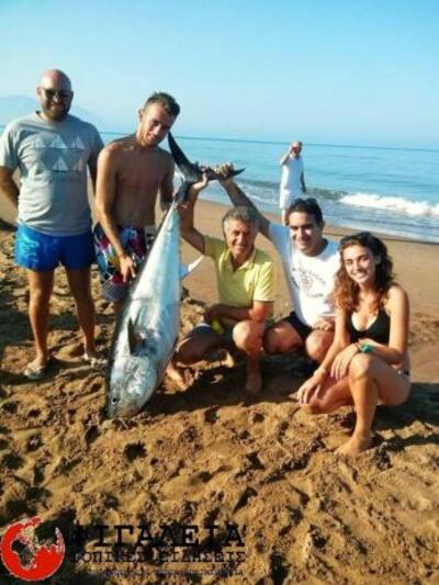 Ένα χρόνο λοιπόν μετά η ομάδα των ψαράδων ξαναχτύπησε! Αυτή την φορά μαζί με τον καλό τους φίλο και πρώην βουλευτή Μιχάλη Κατρίνη, ψάρεψαν έναν Τόνο στη θαλάσσια περιοχή του Ιονίου, βάρους 70 και πλέον κιλών με το μήκος του να ξεπερνά το 1 μέτρο και 70 εκατοστά. Το περιστατικό συνέβη πριν δυο μέρες κατά την διάρκεια ψαρέματος στην θαλάσσια περιοχή όπου ξαφνικά ένα "βαρύ" ψάρι, τσίμπησε το δόλωμα(με πετονία).Χρειάστηκε 2 άτομα για να το ανεβάσουν στη βάρκα και όπως αποδείχθηκε στη συνέχεια, πρόκειται για ψάρι Τόνο (χρυσόπτερος) το κόστος του οποίου ξεπερνά τα 1.000 ευρώ! Μάλιστα τέτοιου είδους ψάρια έχουν πωληθεί σε απίστευτες τιμές στο εξωτερικό όπως ένας κόκκινος τόνος στην Ιαπωνία βάρους 222 κιλών με τιμή 1,38εκ ευρώ ενώ ένας ερυθρός (κυανόπτερος) τόνος βάρους 269 κιλών πουλήθηκε στην τιμή ρεκόρ των 570.000 ευρώ.