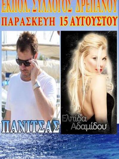 Στην εκδήλωση που διοργανώνει την γιορτινή μέρα του Δεκαπενταύγουστου ο τοπικός εκπολιτιστικός σύλλογος του Δρεπάνου θα τραγουδήσει ο γνωστός Πατρινός λαικός ερμηνευτής Γιάννης Πανίτσας, ο οποίος είναι γνωστός και αγαπητός στο κοινό της περιοχής της Αχαΐας και όχι μόνο από τις live εμφανίσεις του σε κέντρα διασκέδασης της περιοχής και σε άλλες εκδηλώσεις.