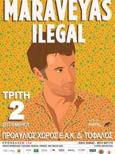 Ο λόγος για τον Κωστή Μαραβέγια (Maraveyas Ilegal) που κατάγεται από την περιοχή του Αγρινίου, ο οποίος μετά τη sold out «μυστική» συναυλία του (amita motion midnight session secret concert) τον περασμένο Ιούνιο στον «Μικρό Πρίγκηπα» και τις sold out του εμφανίσεις στον Κήπο του Μεγάρου Μουσικής στην Αθήνα και την υπόλοιπη Ελλάδα επιστρέφει στην Πάτρα και στον πανέμορφο προαύλιο χώρο του Ε.Α.Κ. Δ. Τόφαλος, στα Μποζαίτικα στις 2 Σεπτεμβρίου 2014 για μια μοναδική συναυλία.