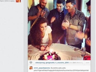 Η τραγουδίστρια Ειρήνη Παπαδοπούλου γιόρτασε χθες τα γενέθλιά της σε ένα μικρό αυτοσχέδιο πάρτι παρουσία του Παντελή Παντελίδη και στενών συνεργατών.