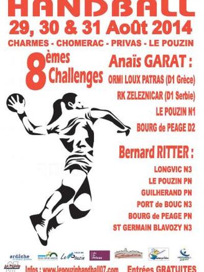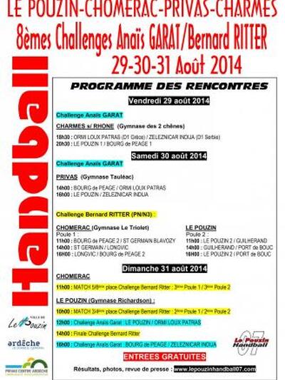 Οι αγώνες θα πραγμαποτποιηθούν στις πόλεις Pirvas και Le Pouzin στις 29-30-31 Αυγούστου. Στο τουρνουά Anais Garat/ Bernard Ritter μετέχουν άλλες 6 γαλλικές ομάδες τοπικών κατηγοριών.