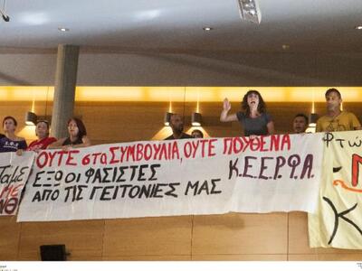Την ίδια στιγμή, σε "πεδίο μάχης" μεταξύ αντιφασιστών και υποστηρικτών της Χρυσής Αυγής μετατράπηκε η αίθουσα του δημοτικού συμβουλίου Θεσσαλονίκης.