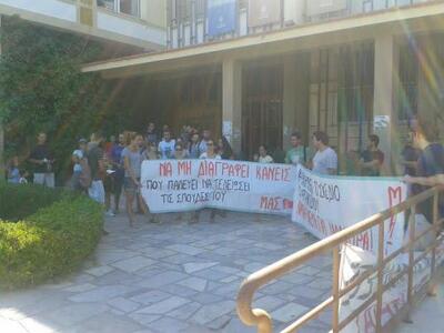 Μετά από κάλεσμα της Γραμματείας Πάτρας του ΜΑΣ, φοιτητές από Συλλόγους του Πανεπιστημίου πραγματοποίησαν παράσταση διαμαρτυρίας την Πέμπτη 28/8 στην Πρυτανεία του Πανεπιστημίου, ενάντια στο μέτρο της διαγραφής φοιτητών, όπου συναντήθηκαν και με τον Πρύτανη του Ιδρύματος.