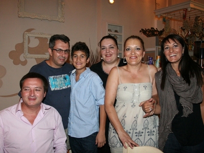 Ο Νίκος Ελευθερίου, ο Χρήστος Χατζηπαναγιώτης, οι ιδιοκτήτριες του "Απέναντι από το Ωδείο" και η Ασπασία Παϊζη, αμέσως μετά την παράσταση στο "Απέναντι από το Ωδείο".