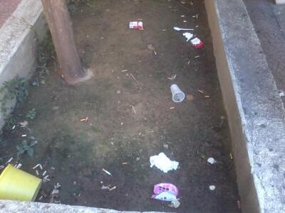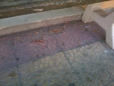 Ενώ υπάρχει σήμανση ότι απαγορεύεται το κάπνισμα , συμβαίνει ακριβώς το αντίθετο με τα τσιγάρα, όπως φαίνεται και στις σχετικές φωτογραφίες, να βρίσκονται παντού βρομίζοντας τον χώρο.