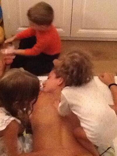 Αναστασία, Αλέξανδρος και Αριάδνη δείχνουν να «προσέχουν» τη μαμά τους με ιδιαίτερο τρόπο, αφού, όπως σχολίασε η ίδια της κάνουν μασάζ έξι χέρια!