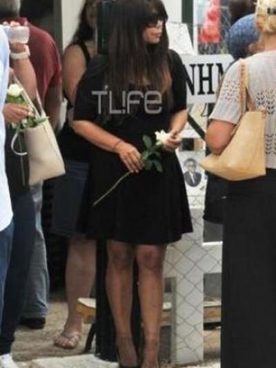 Ο φωτογραφικός φακός του TLIFE, την εντόπισε ντυμένη στα μαύρα, κρατώντας ένα λευκό τριαντάφυλλο, και με την θλίψη ζωγραφισμένη στο πρόσωπό της, στο παρεκκλήσι όπου έγινε η νεκρώσιμη ακολουθία