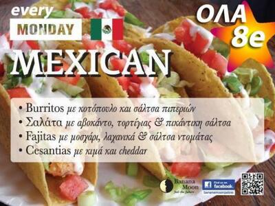 Σας προσκαλούμε απο σήμερα και κάθε Δευτέρα στο ΒΑNANA MOON να μοιραστούμε το πάθος μας για τις μεξικάνικες γεύσεις και τα αρώματα της χώρας της τεκίλα που δημιουργεί για εσάςο Γάλλος CHEF JEAN NOVELLI...