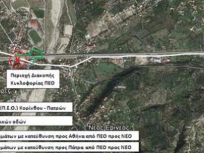- Η κυκλοφορία στην ΠΕΟ θα διακοπεί στην περιοχή «Καμάρες» και η κίνηση των ΙΧ και στις δύο κατευθύνσεις θα εκτρέπεται μέσω της κάτω διάβασης παραπλεύρως του ποταμού Φοίνικα και τοπικών οδών, ενώ η κίνηση των βαρέων οχημάτων (άνω των 5t) θα εκτρέπεται στη ΝΕΟ Κορίνθου Πατρών, στην μεν κατεύθυνση προς Πάτρα μέσω του κόμβου Σελιανίτικων, στη δε κατεύθυνση προς Αθήνα μέσω Κάτω Διάβασης στην περιοχή των Μπαρμπουνέικων (ανώτατο ύψος 4,00μ.) και προσωρινής ράμπας εισόδου περί τη ΧΘ 186+300 της ΝΕΟ.