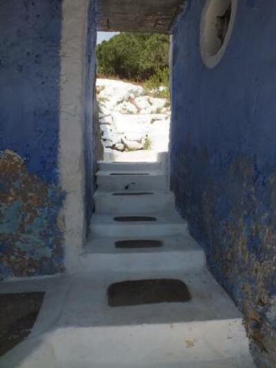 Ο βραχίονας του αλιευτικού σπρώχνει τα νερά στον κόλπο, δεν επιτρέπει την έξοδό τους με αποτέλεσμα να λιμνάζουν κάτω από το «γαλάζιο σπίτι». Αυτή η χρόνια πίεση δημιούργησε κάτω από το ιερό της εκκλησίας σπηλιές με κίνδυνο κατάρρευσης της. Μεγάλο πρόβλημα για την οικία, μεγάλο μπλέξιμο με υπουργεία, κοινότητες και δήμο. Η αμετάκλητη εντολή το Υπουργείου Πολιτισμού να κατεδαφιστεί το αλιευτικό, δεν έχει εφαρμοστεί.