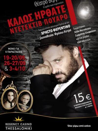 Η θεατρική παράσταση με τίτλο «Καλώς ήρθατε κύριε Πουαρό» που έκανε αίσθηση την περασμένη χειμερινή θεατρική σαιζόν όταν πρωτοπαίχθηκε στον χώρο του «Ελληνικού Μουσείου Αυτοκινήτου» του Ομίλου Χαραγκιώνη στην οδό 3ης Σεπτεμβρίου στην Αθήνα, επιστρέφει αυτή τη φορά στην Θεσσαλονίκη, στο Θέατρο Βεργίνα, Regency Casino.