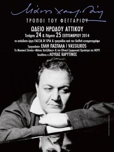 Η αρχή θα γίνει με δυο συναυλίες στο Ηρώδειο, με γενικό τίτλο «Μάνος Χατζιδάκις, Τρόποι του Φεγγαριού» στις 24 & 25 Σεπτεμβρίου 2014, στις 21.00 όπου στο πρώτο μέρος θα παιχτεί για πρώτη φορά το ανέκδοτο soundtrack της ταινίας του G.Ferrara «Faccia di spia» του 1975, από την Εθνική Συμφωνική Ορχήστρα της ΝΕΡΙΤ και το Μουσικό Σύνολο Χατζιδάκις με αρχιμουσικό τον Λουκά Καρυτινό.