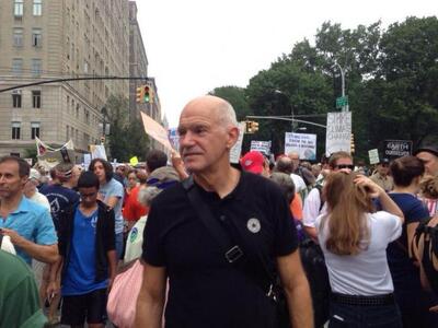 Στους δρόμους της Νέας Υόρκης βγήκε ο πρώην πρωθυπουργός, Γιώργος Παπανδρέου, προκειμένου να συμμετάσχει σε διαδήλωση για την κλιματική αλλαγή.