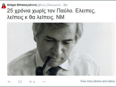 Το πρωί της 26ης Σεπτεμβρίου 1989 ο Παύλος Μπακογιάννης έπεφτε νεκρός από τις σφαίρες των τρομοκρατών της 17 Νοέμβρη. Για τη συμπλήρωση των 25 ετών από αυτή την «μαύρη» επέτειο η Ντόρα Μπακογιάννη έγραψε ένα σύντομο, αλλά αρκετά συγκινητικό μήνυμα στον προσωπικό λογαριασμό της στο Twitter.