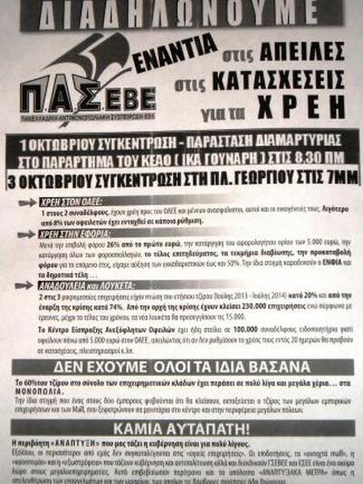 Επίσης καλεί στις 3 Οκτωβρίου στις 7μμ στη συγκέντρωση με το Π.Α.ΜΕ. στην Πλ. Γεωργίου.