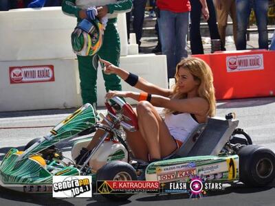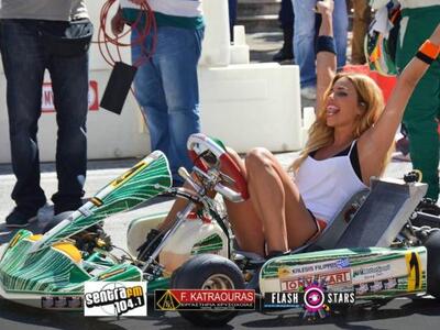 Η όμορφη Κατερίνα Στικούδη μάλιστα όπως μαρτυρούν και οι φωτό του flashstars skaipatras, απόλαυσε και τη θέση της σ’ ένα από τα αγωνιστικά cart οχήματα. Άφησε άναυδους μικρούς και μεγάλους ενώ έπαιξε και με την καρό σημαία.