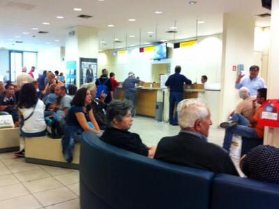 Οι ουρές σχηματίσθηκαν από νωρίς έξω από τις κλειστές πόρτες των τραπεζών και των ταχυδρομείων, προκειμένου οι υπόχρεοι να πάρουν καλή θέση προτεραιότητας, με την έναρξη του ωραρίου.
