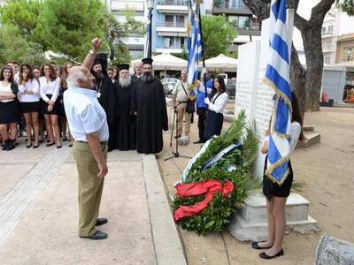 Στο πλαίσιο του εορτασμού μνήμης τελέστηκε στις 10.30 το πρωί Δοξολογία στον ιερό Μητροπολιτικό Ναό Ευαγγελιστρίας, παρουσία των εκπροσώπων των τοπικών Αρχών, καθώς και μελών των Αντιστασιακών Οργανώσεων και ομιλητή τον δάσκαλο Πέτρο Βάη.
