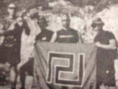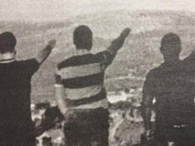Σε μία φωτογραφία εμφανίζονται τρεις χρυσαυγίτες να... ατενίζουν τα ελληνοαλβανικά σύνορα προς την πλευρά της Βορείου Ηπείρου, χαιρετώντας φασιστικά.