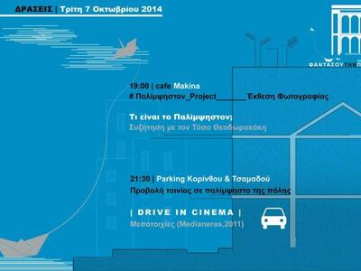 Στο πλαίσιο της έκθεσης «Φαντάσου την πόλη: Πάτρα 2014» την Τρίτη 7 Οκτωβρίου 2014 στις 21.00 το βράδυ, οι διοργανωτές του Imagine the city, μας καλούν να πάρουμε το ΙΧ, δίκυκλο, ποδήλατο και πατίνι και να μαζευτούμε στο «Παλίμψηστο Parking», Τσαμαδού & Κορίνθου για να δούμε από κοντά την ταινία «Μεσοτοιχίες – Medianeras», του Gustavo Taretto, παραγωγής 2011.