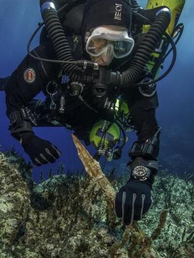 Ενα χάλκινο συμπαγές δόρυ με σταυρό (σαυρωτήρα) – το οποίο προέρχεται από χάλκινο ή μαρμάρινο άγαλμα – ένας χάλκινος δακτύλιος προσαρμοσμένος σε χάλκινο καρφί, μολύβδινο κάτω μέρος (στύπος) άγκυρας του ναυαγισμένου πλοίου που είχε εντοπιστεί το 2013, ένας δακτύλιος, μια χάλκινη απόληξη στηρίγματος κλίνης και καθώς και σχεδόν ακέραιη λάγυνος (σ.σ. είδος αγγείου) είναι σύμφωνα με επίσημη ανακοίνωση του υπουργείου Πολιτισμού τα ευρήματα της νέας ενάλιας έρευνας που διεξήχθη από τις 15 Σεπτεμβρίου στο Ναυάγιο των Αντικυθήρων με τίτλο «Επιστροφή στα Αντικύθηρα».