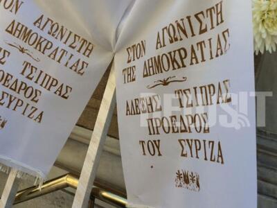 Στεφάνια μεταξύ άλλων έχουν στείλει ο πρόεδρος του ΣΥΡΙΖΑ, Αλέξης Τσίπρας, ο Βαρδής και η Μαριάννα Βαρδινογιάννη, ο Κωνσταντίνος Μητσοτάκης, η διπλωματική αντιπροσωπεία της Παλαιστίνης και η Κ.Ο. του ΠΑΣΟΚ.