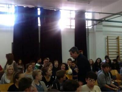 Οπως έγραψε λίγο αργότερα στον λογαριασμό του στο Facebook, «συνομιλήσαμε με τους καθηγητές και τους μαθητές της Β’ Λυκείου, ακούσαμε τις ανησυχίες και τα όνειρα για τις σπουδές που θέλουν να κάνουν. Στο σχολείο βρίσκονταν και 40 φιλοξενούμενοι μαθητές από γερμανικό λύκειο της πόλης Σβεμπισχαλ».