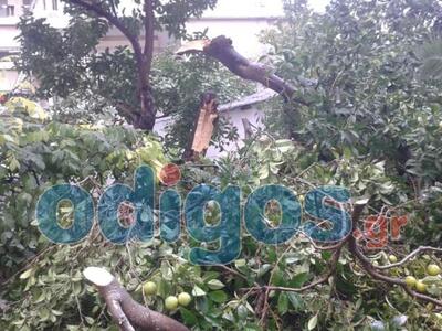 Στον Πύργο οι θυελλώδες άνεμοι έσπασαν μια πορτοκαλιά στην οδό Μυστρά και την έριξαν πάνω σε σταθμευμένο αυτοκίνητο. Στο σημείο έσπευσε η Πυροσβεστική που έκοψε το δέντρο και καθάρισε το δρόμο, ενώ ευτυχώς το αυτοκίνητο δεν έπαθε σοβαρές ζημιές.