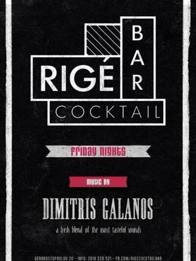 Αυτή την Παρασκευή το RIGE σας περιμένει να απολαύσετε το cocktail σας ταξιδεύοντας με τις μουσικές επιλογές του DJ Δημήτρη Γαλανού.
